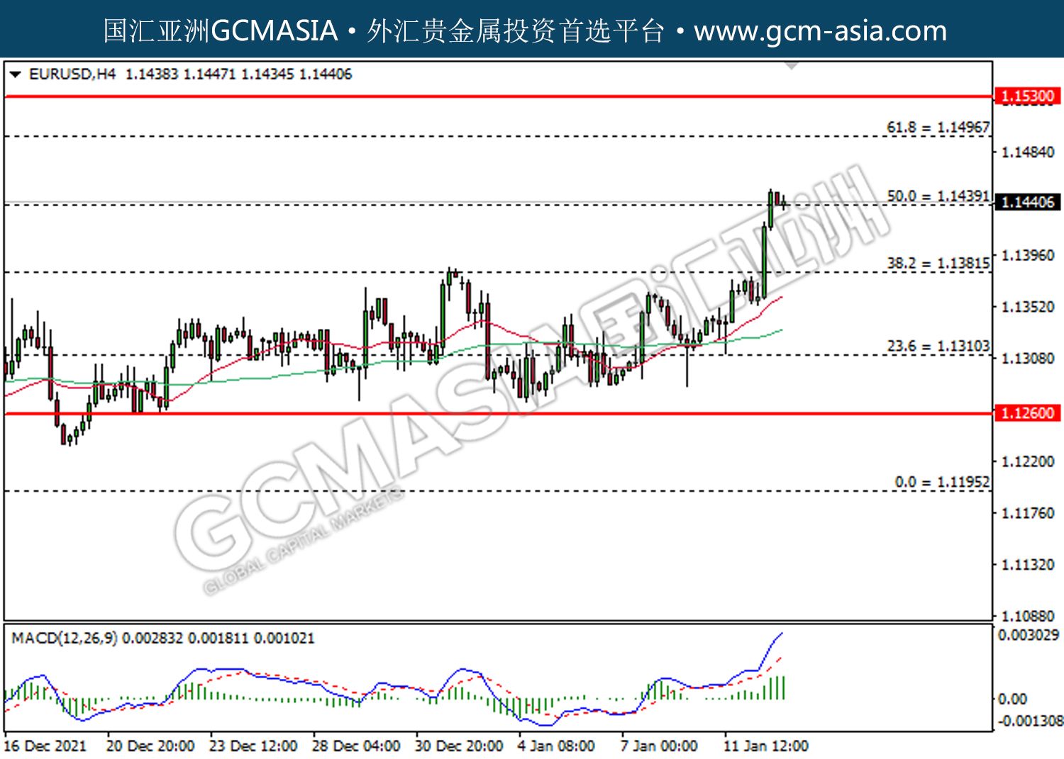 20220113 EURUSD 午间 by willy | Jan 13, 2022 | 欧元兑美元 | 0 comments EURUSD,H4:欧美低位反弹。MACD开始形成金叉,动能转强,短期关注多头势力为主。上方关注1.1495压力和1.1530压力,下方关注1.1440支撑和1.1380支撑。