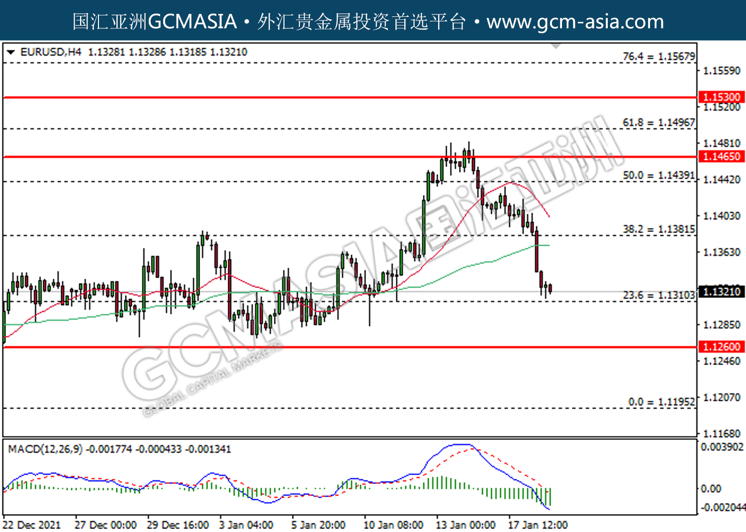 EURUSD,H4:欧美受承压回落。MACD已形成死叉,动能转弱,若下破可继续看空。上方关注1.1380压力和1.1440压力,下方关注1.1310支撑和1.1260支撑。