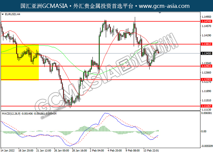 20220216 EURUSD-午间 by willy | Feb 16, 2022 | 欧元兑美元 | 0 comments EURUSD, H4: 欧美低位反弹。MACD多头动能略增,短期可关注多头为主。上方关注1.1380压力和1.1475压力,下方关注1.1290支撑和1.1235支撑。