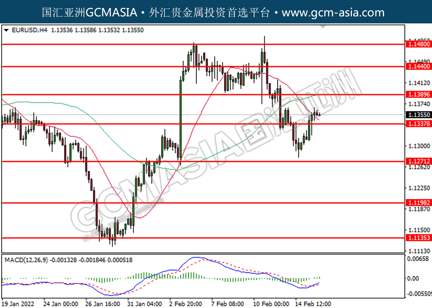 20220216 EURUSD by willy | Feb 16, 2022 | 欧元兑美元 | 0 comments EURUSD,H4:欧美低位反弹。MACD已形成金叉,动能转强,短期关注多头势力为主。上方关注1.1390压力和1.1440压力,下方关注1.1340支撑和1.1270支撑。