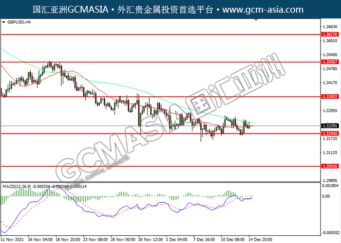 GBPUSD,H4:镑美震荡下行,目前测试前期支撑。MACD多头动能略减,若下破可关注空头为主。上方关注1.3355压力和1.3505压力,下方关注1.3195支撑和1.3050支撑。