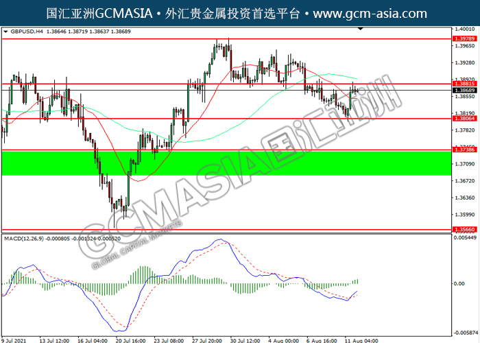 20210812 GBPUSD by willy | Aug 12, 2021 | 英镑兑美元 | 0 comments GBPUSD,H4:镑美低位反弹。MACD多头动能略增,短期可关注多头为主。上方关注1.3880压力和1.3980压力,下方关注1.3805支撑和1.3740支撑。