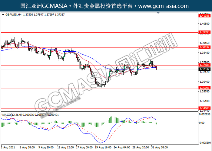 20210901 GBPUSD-午间 by keyk | Sep 1, 2021 | 英镑兑美元 | 0 comments GBPUSD,H4:镑美高位承压回落。MACD形成死叉,动能略减,短期继续看空回调为主。上方关注1.3760压力和1.3885压力,下方关注1.3600支撑和1.3460支撑。