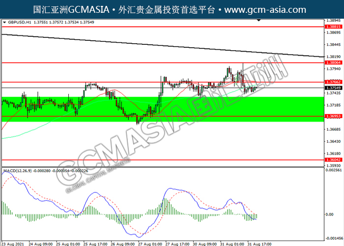 20210901 GBPUSD by willy | Aug 31, 2021 | 英镑兑美元 | 0 comments GBPUSD,H4:镑美下破前期支撑,震荡下行。MACD空头动能略减,短期可关注技术性回调为主。上方关注1.3765压力和1.3805压力,下方关注1.3695支撑和1.3605支撑。