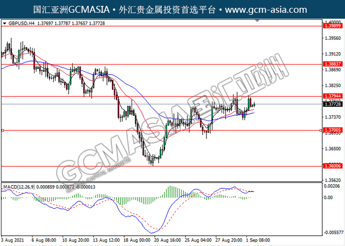 20210902 GBPUSD-午间 by keyk | Sep 2, 2021 | 英镑兑美元 | 0 comments GBPUSD,H4:镑美震荡上行,目前测试靠近前期压力。MACD空头动能略减,若突破可继续看多为主。上方关注1.3795压力和1.3885压力,下方关注1.3700支撑和1.3600支撑。