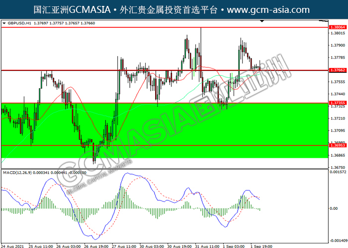 20210902 GBPUSD by willy | Sep 2, 2021 | 英镑兑美元 | 0 comments GBPUSD,H1:镑美震荡下行,目前测试前期支撑。MACD空头动能略增,若下破可关注空头为主。上方关注1.3805压力和1.3880压力,下方关注1.3765支撑和1.3735支撑。