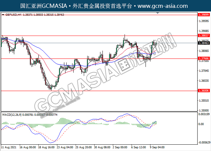 20210910 GBPUSD-午间 by keyk | Sep 10, 2021 | 英镑兑美元 | 0 comments GBPUSD,H4:镑美多头排列,目前测试靠近前期压力。MACD动能略增,若突破可继续看为主。上方关注1.3885压力和1.3990压力,下方关注1.3765支撑和1.3600支撑。