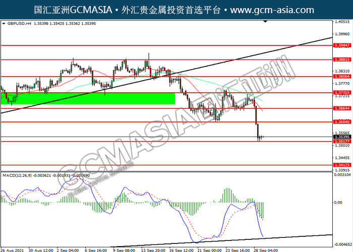20210929 GBPUSD by keyk | Sep 29, 2021 | 英镑兑美元 | 0 comments GBPUSD,H4:镑美震荡下行,目前测试前期支撑。MACD空头动能略增,若下破可关注空头为主。上方关注1.3605压力和1.3665压力,下方关注1.3515支撑和1.3415支撑。