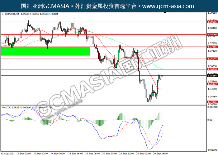 20211004 GBPUSD by keyk | Oct 4, 2021 | 英镑兑美元 | 0 comments GBPUSD,H4:镑美震荡上行。MACD多头动能略增,短期可关注多头为主。上方关注1.3605压力和1.3665压力,下方关注1.3515支撑和1.3415支撑。