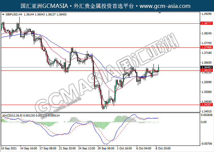 GBPUSD,H4:镑美突破前期压力,震荡上行。然而,MACD动能略增,短期继续看多为主。上方关注1.3745压力和1.3875压力,下方关注1.3620支撑和1.3435支撑。