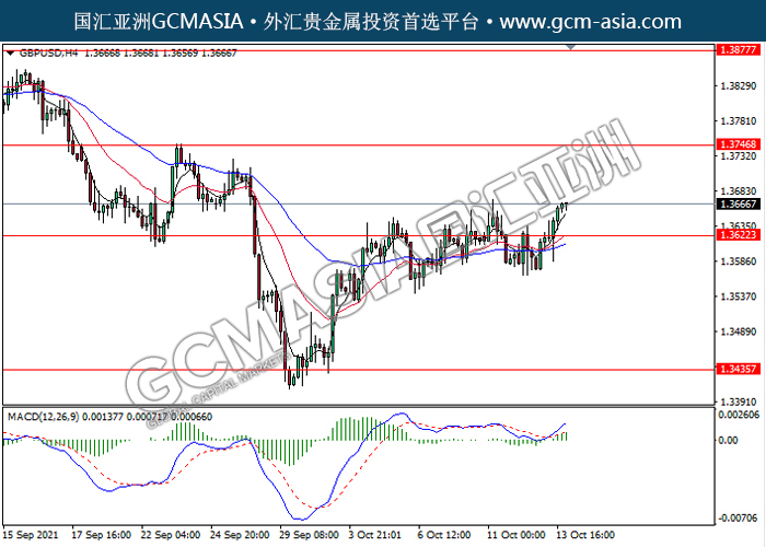 20211014 GBPUSD-午间 by keyk | Oct 14, 2021 | 英镑兑美元 | 0 comments GBPUSD,H4:镑美突破前期压力,多头排列。MACD动能持续略增,短期继续看多为主。上方关注1.3745压力和1.3875压力,下方关注1.3620支撑和1.3435支撑。