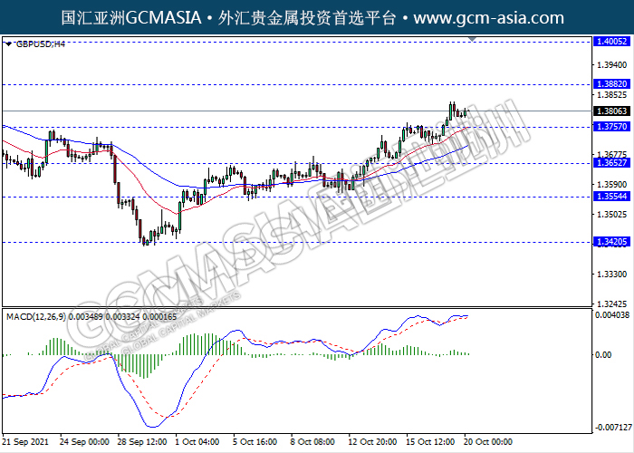 20211020 GBPUSD-午间 by keyk | Oct 20, 2021 | 英镑兑美元 | 0 comments GBPUSD,H4:镑美高位承压回落。MACD多头动能略减,短期继续看空回调为主。上方关注1.3880压力和1.4005压力,下方关注1.3755支撑和1.3650支撑。