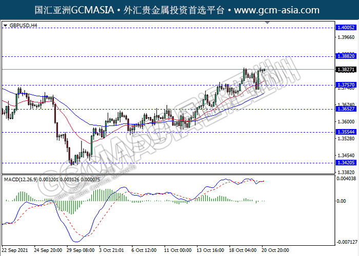 GBPUSD,H4:镑美触底反弹上行。MACD动能略增,短期继续看多反弹为主。上方关注1.3880压力和1.4005压力,下方关注1.3755支撑和1.3650支撑。