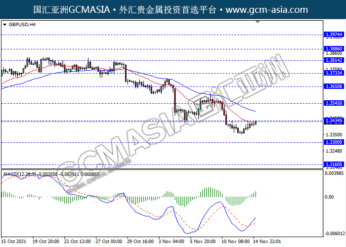 20211115 GBPUSD-午间 by willy | Nov 15, 2021 | 英镑兑美元 | 0 comments GBPUSD,H4:镑美低位反弹上行,目前测试前期雅鹿。MACD形成金叉,动能略增,若突破继续看多为主。上方关注1.3435压力和1.3545压力,下方关注1.3300支撑和1.3160支撑。