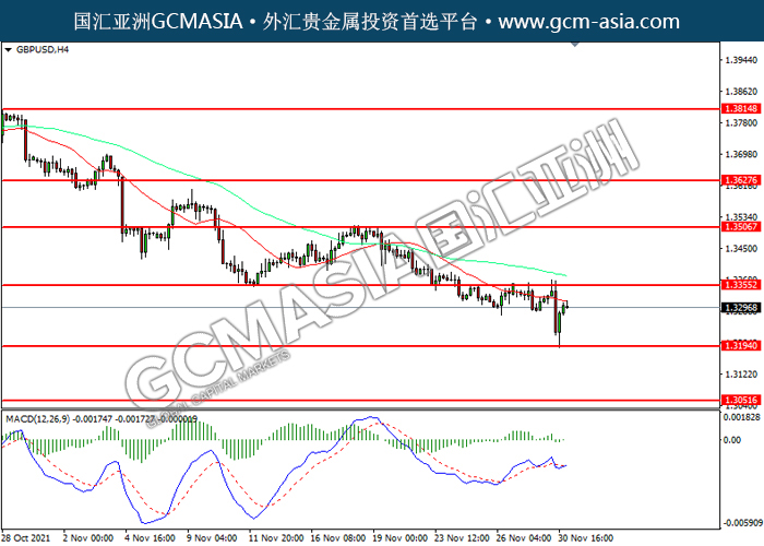 20211201 GBPUSD by willy | Dec 1, 2021 | 英镑兑美元 | 0 comments GBPUSD,H4:镑美震荡上行,目前测试前期压力。然而,MACD空头动能略减,若突破可关注多头为主。上方关注1.3355压力和1.3505压力,下方关注1.3195支撑和1.3050支撑。