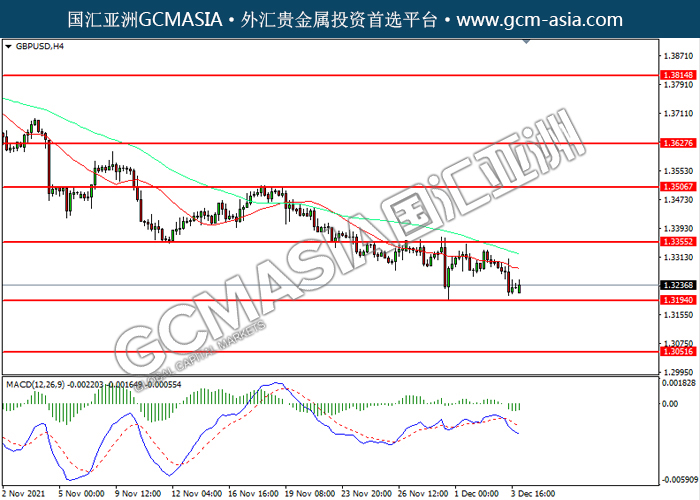 20211206 GBPUSD by willy | Dec 6, 2021 | 英镑兑美元 | 0 comments GBPUSD,H4:镑美震荡下行,目前测试前期支撑。然而,MACD空头动能略减,短期可关注技术性回调为主。上方关注1.3355压力和1.3505压力,下方关注1.3195支撑和1.3050支撑。