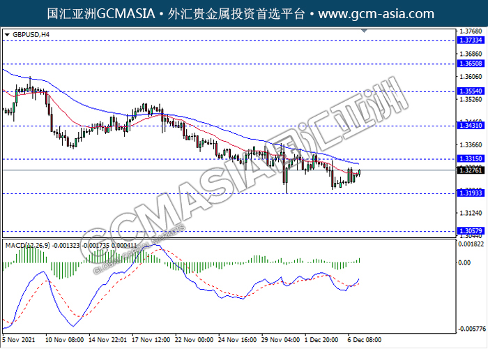 20211207 GBPUSD-午间 by keyk | Dec 7, 2021 | 英镑兑美元 | 0 comments GBPUSD,H4:镑美触底反弹上行,目前测试靠近前期压力。MACD形成金叉,动能略增,若突破可继续看多为主。上方关注1.3315压力和1.3430压力,下方关注1.3195支撑和1.3055支撑。