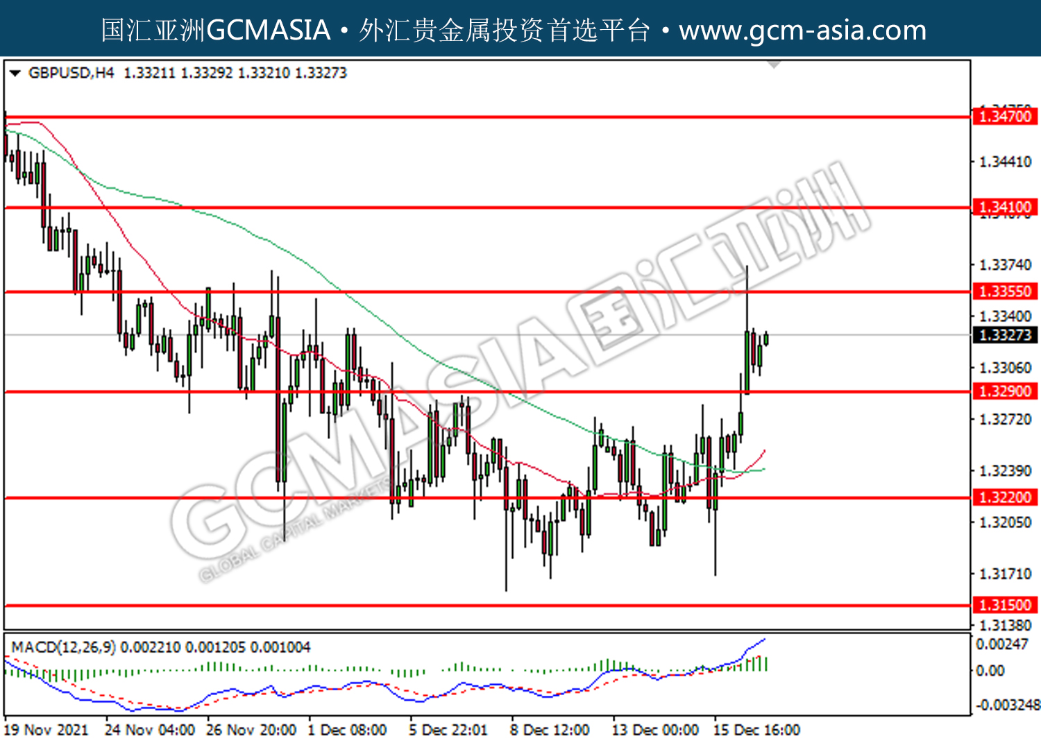 20211217 GBPUSD by willy | Dec 17, 2021 | 英镑兑美元 | 0 comments GBPUSD,H4:镑美震荡上行。MACD已形成金叉,动能偏强,短期关注多头势力。上方关注1.3355压力和1.3410压力,下方关注1.3290支撑和1.3220支撑。