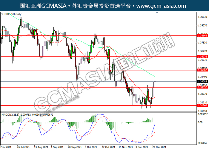 GBPUSD,Daily:镑美突破前期压力,震荡上行。MACD多头动能略增,短期可关注多头为主。上方关注1.3505压力和1.3625压力,下方关注1.3355支撑和1.3195支撑。
