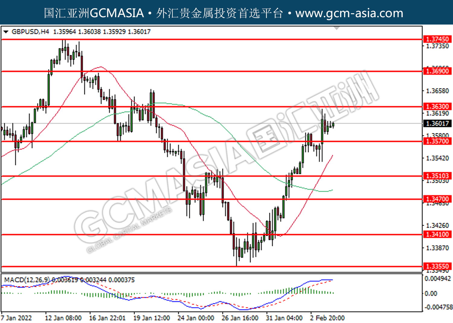 20220204 GBPUSD by willy | Feb 4, 2022 | 英镑兑美元 | 0 comments GBPUSD,H4:镑美低位反弹。然而MACD多头动能有所略减,短期关注空头为主。上方关注1.3630压力和1.3690压力,下方关注1.3570支撑和1.3510支撑。