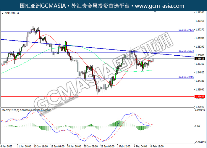 20220209 GBPUSD-午间 by willy | Feb 9, 2022 | 英镑兑美元 | 0 comments GBPUSD,H4:镑美震荡下行。然而,MACD空头动能略减,短期可关注技术性回调为主。上方关注1.3595压力和1.3715压力,下方关注1.3450支撑和1.3340支撑。