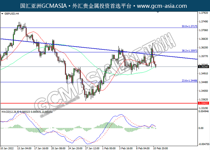 20220211 GBPUSD-午间 by willy | Feb 11, 2022 | 英镑兑美元 | 0 comments GBPUSD,H4:镑美震荡下行。MACD空头动能略增,短期可关注空头为主。上方关注1.3595压力和1.3715压力,下方关注1.3450支撑和1.3340支撑。