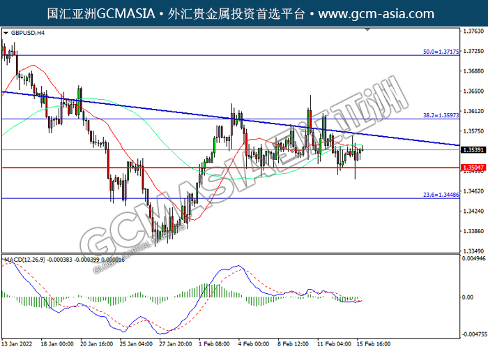 20220216 GBPUSD-午间 by willy | Feb 16, 2022 | 英镑兑美元 | 0 comments GBPUSD,H4:镑美震荡上行。MACD空头动能略减,短期可关注多头为主。上方关注1.3595压力和1.3715压力,下方关注1.3505支撑和1.3450支撑。