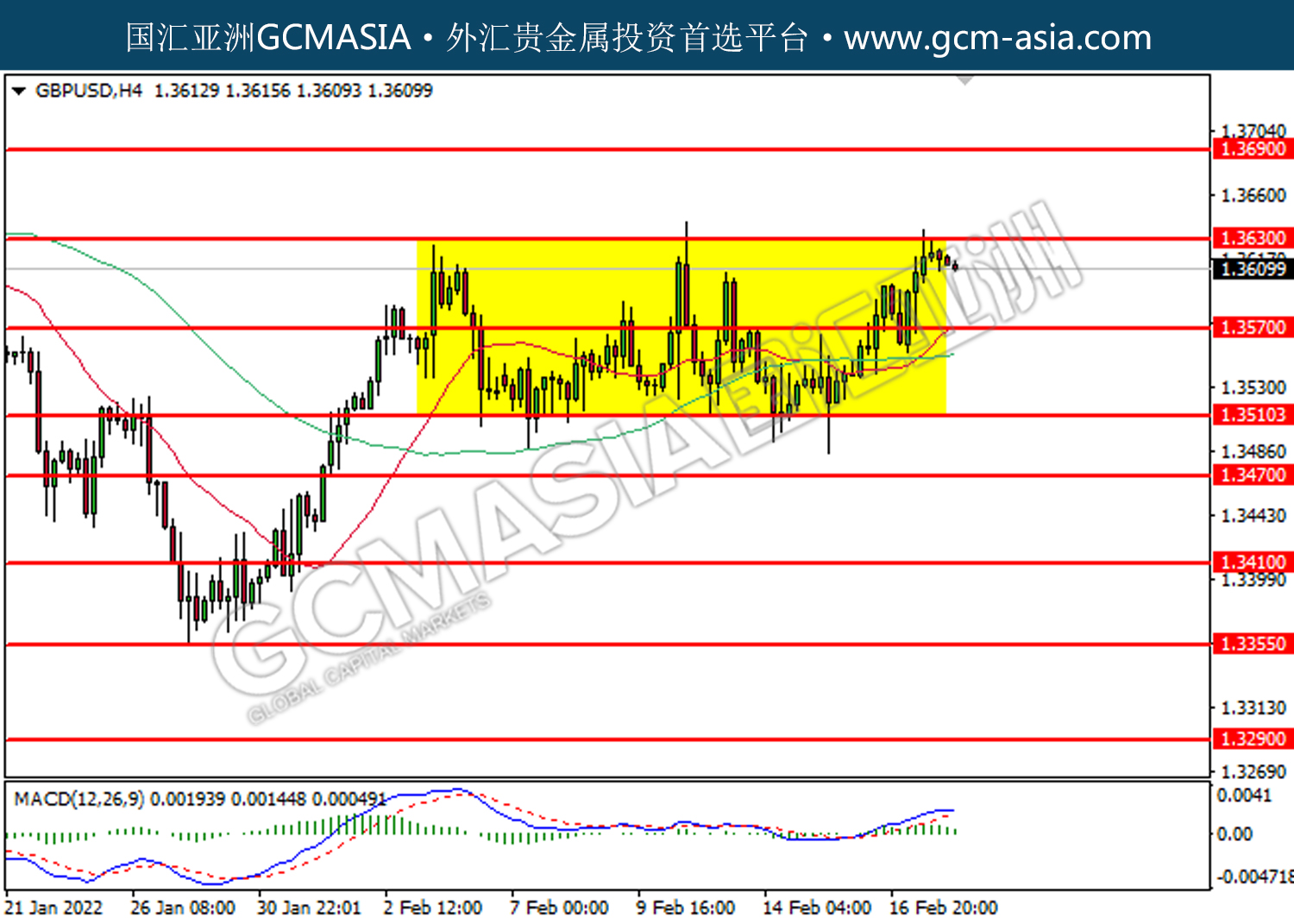 GBPUSD,H4:镑美受承压回落。MACD多头动能有所略减,短期关注空头为主。上方关注1.3630压力和1.3690压力,下方关注1.3570支撑和1.3510支撑。