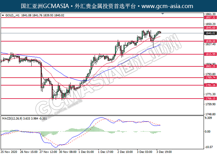 20201204 GOLD_ by willy | Dec 4, 2020 | 黄金 | 0 comments GOLD_,H1:黄金低位反弹。MACD转向多头,动能略增,短期可关注多头为主。上方关注1845.60压力和1857.30压力,下方关注1830.50支撑和1816.00支撑。