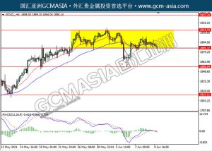 20210610 GOLD-午间 by keyk | Jun 10, 2021 | 黄金 | 0 comments GOLD_,Daily:黄仍区间震荡交易,目前测试前期支撑。然而,MACD形成死叉,动能略减,若突破关注空头趋势为主。上方关注1913.75压力和1937.35压力,下方关注1885.35支撑和1856.05支撑。