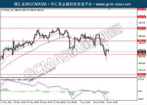 20210615 GOLD-午间 by keyk | Jun 15, 2021 | 黄金 | 0 comments GOLD_,H4:黄金空头排列,目前测试靠近前期支撑。MACD动能持续略减,若突破继续看空为主。上方关注1885.35压力和1913.30压力,下方关注1856.0支撑和1812.10支撑。