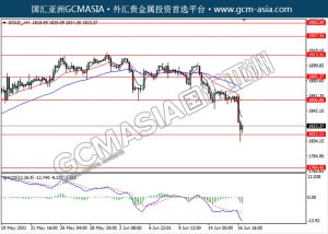 20210617 GOLD-午间 by keyk | Jun 17, 2021 | 黄金 | 0 comments GOLD_,H4:黄金空头排列,目前测试前期支撑。MACD动能略减,若突破继续看空为主。上方关注1856.00压力和1885.35压力,下方关注1812.10支撑和1769.45支撑。