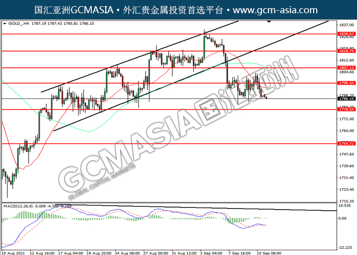 20210913 GOLD by willy | Sep 13, 2021 | 黄金 | 0 comments GOLD_,H4:黄金震荡下行。MACD空头动能略增,短期可关注空头为主。上方关注1796.55压力和1807.15压力,下方关注1778.55支撑和1754.70支撑。