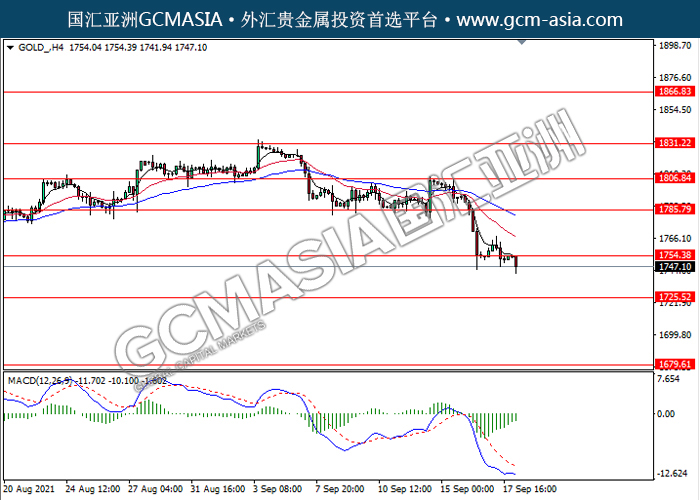 20210920 GOLD-午间 by keyk | Sep 20, 2021 | 黄金 | 0 comments GOLD_,H4:黄金突破前期支撑,震荡下行。MACD动能略减,短期可继续看空为主。上方关注1754.40压力和1785.80压力,下方关注1725.50支撑和1679.60支撑。