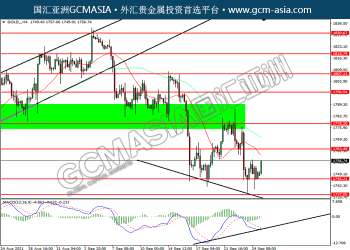 20210927 GOLD by willy | Sep 27, 2021 | 黄金 | 0 comments GOLD_,H4:黄金低位反弹。MACD空头动能略减,短期可关注多头为主。上方关注1763.50压力和1778.20压力,下方关注1746.20支撑和1737.05支撑。