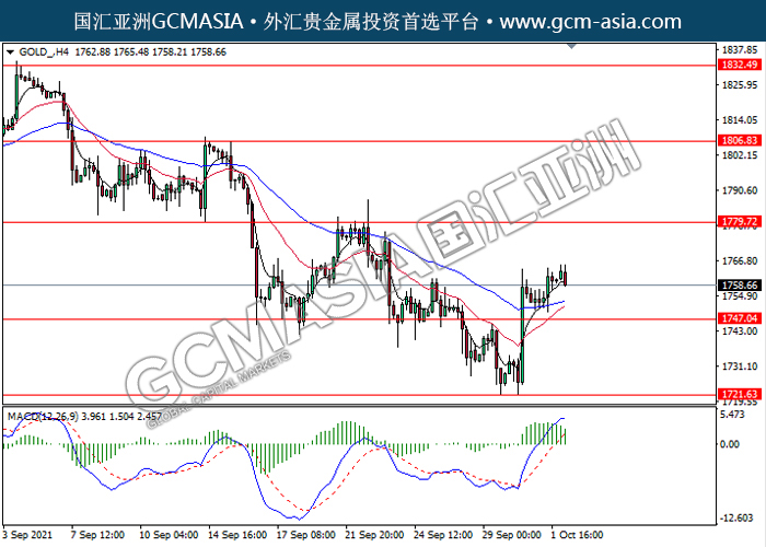 20211004 GOLD-午间 by keyk | Oct 4, 2021 | 黄金 | 0 comments GOLD_,H4:黄金近期低位反弹上行。MACD动能略增,短期继续看多为主。上方关注1779.70压力和1806.85压力,下方关注1747.05支撑和1721.65支撑。