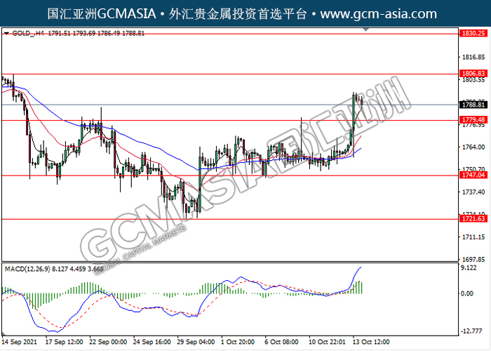 20211014 GOLD-午间 by keyk | Oct 14, 2021 | 黄金 | 0 comments GOLD_,H4:黄金高位承压回落。MACD多头动能开始略减,短期关注继续关注技术性空头回调为主。上方关注1806.85压力和1830.25压力,下方关注1779.50支撑和1747.05支撑。