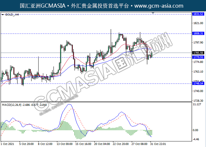 20211101 GOLD-午间 by willy | Nov 1, 2021 | 黄金 | 0 comments GOLD_,H4:黄金触底反弹上行。MACD空头动能略减,短期继续看多反弹为主。上方关注1808.30压力和1831.50压力,下方关注1779.95支撑和1748.55支撑。