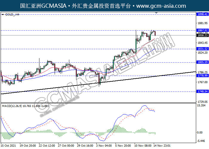 20211115 GOLD-午间 by willy | Nov 15, 2021 | 黄金 | 0 comments GOLD_,H4:黄金高位承压回落。MACD动能略减,短期可继续看空回调为主。上方关注1867.50压力和1898.40压力,下方关注1831.50支撑和1805.60支撑