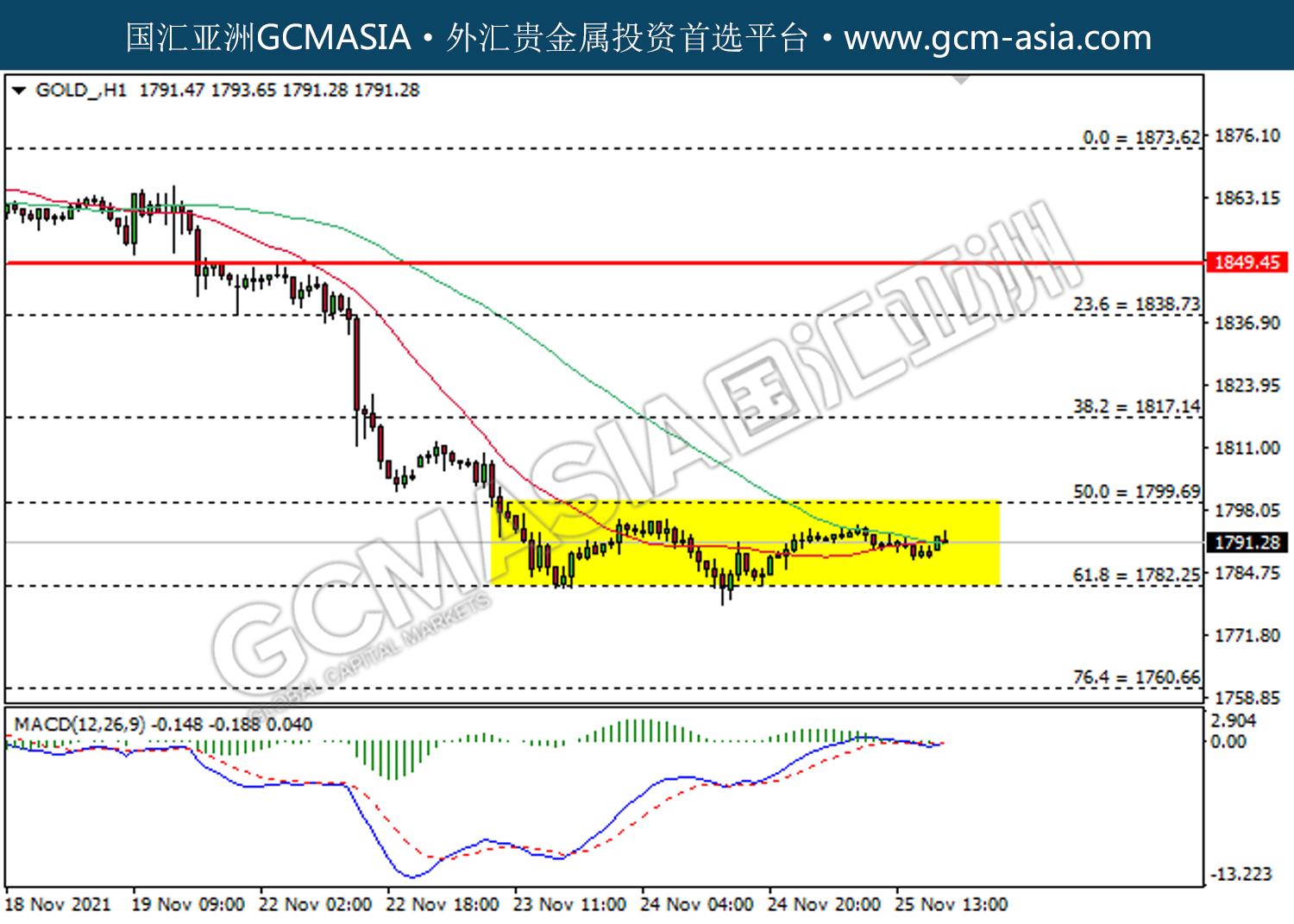 GOLD_,H4:黄金低位反弹。MACD空头动能有所略减,短期关注多头势力为主。上方关注1799.70压力和1817.15压力,下方关注1782.25支撑和1760.65支撑。