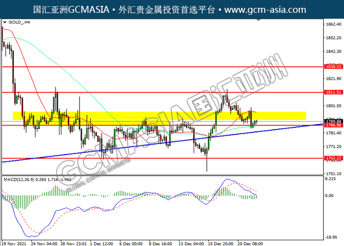 20211222 GOLD-午间 by willy | Dec 22, 2021 | 黄金 | 0 comments GOLD_,H4:黄金震荡下行,目前测试前期支撑。然而,MACD空头动能略减,短期可关注技术性回调为主。上方关注1811.50压力和1830.55压力,下方关注1787.00支撑和1762.20支撑。