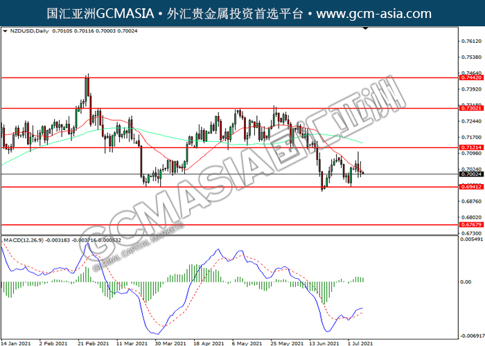 NZDUSD,Daily: 纽美震荡下行。MACD多头动能略减,短期可关注空头为主。上方关注0.7120和0.7305压力,下方关注0.6940支撑和0.6770支撑。