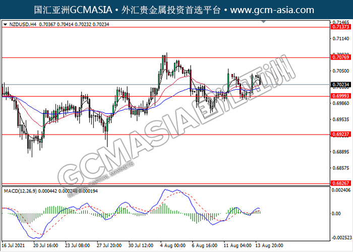 160821 NZDUSD-午间 by keyk | Aug 16, 2021 | 纽元兑美元 | 0 comments NZDUSD,H4: 纽美高位承压回落,目前测试前期支撑。MACD动能略减,若突破可关注继续关注空头方向为主。上方关注0.7075和0.7135压力,下方关注0.7000支撑和0.6925支撑。