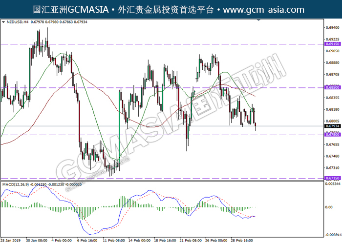 20190305-NZDUSD-午间 by skylow | Mar 5, 2019 | 纽元兑美元 | 0 comments NZDUSD,H4:纽美震荡下行,目前测试靠近前期支撑。MACD动能略增,若突破可继续看空为主。上方关注0.6850压力和0.6915压力,下方关注0.6780支撑和0.6715支撑。
