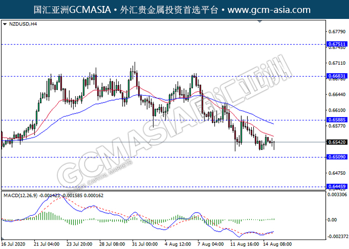 NZDUSD,H4: 纽美震荡下行,目前测试靠近前期支撑。然而,MACD形成金叉,动能略增,短期关注多头方向为主。上方关注0.6590和0.6685压力,下方关注0.6510支撑和0.6395支撑。