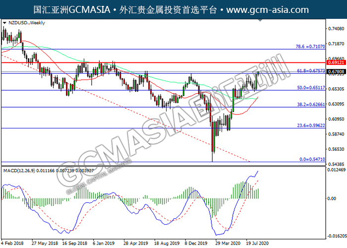 20200902 NZDUSD-午间 by willy | Sep 2, 2020 | 纽元兑美元 | 0 comments GCMAsia-NZDUSD NZDUSD 2020-09-02 NZDUSD,H4: 纽美突破前期压力,震荡上行。MACD多头动能略增,短期可关注多头为主。上方关注0.6910和0.7105压力,下方关注0.6755支撑和0.6510支撑。