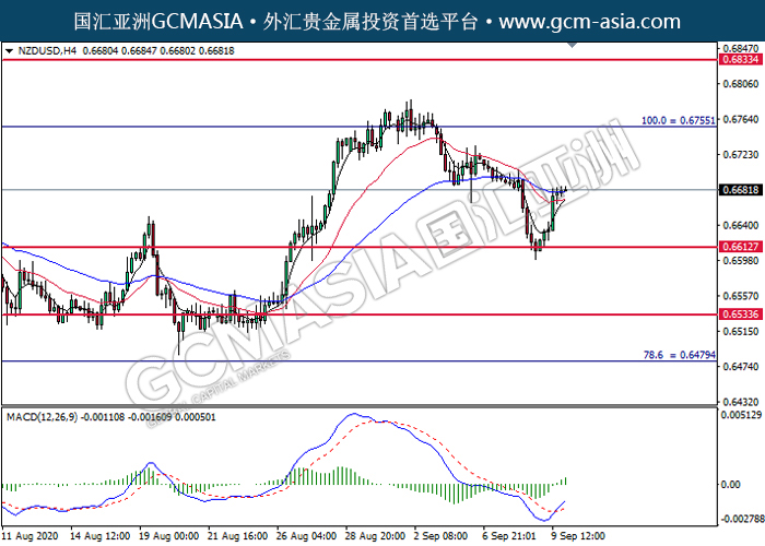 20200910 NZDUSD by willy | Sep 10, 2020 | 纽元兑美元 | 0 comments GCMAsia-NZDUSD NZDUSD 2020-09-10 NZDUSD,Daily: 紐美低位反弹。MACD显示多头信号,短期可关注多头走势为主。上方关注0.6755和0.6835压力,下方关注0.6615支撑和0.6535支撑。