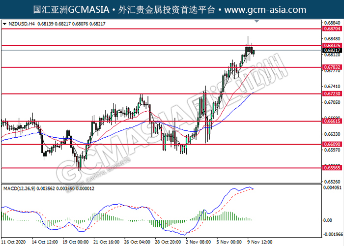 NZDUSD,Weekly: 纽美震荡上行,目前测试前期压力。MACD已形成金叉,动能转强,突破可关注多头为主。上方关注0.6915压力和0.7115压力,下方关注0.67650支撑和0.6515支撑。