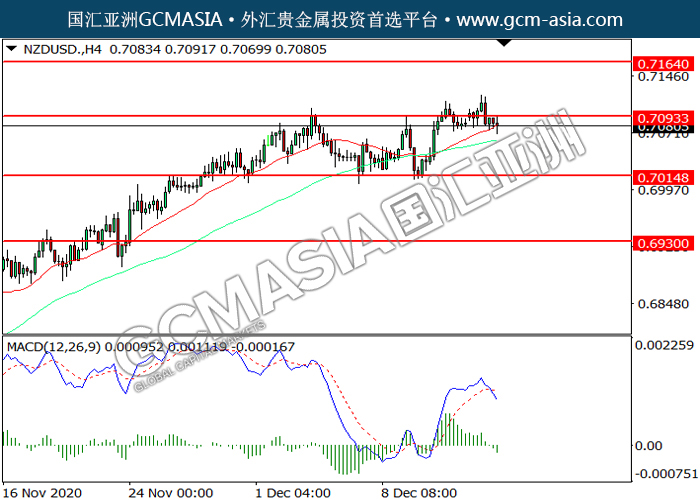 20201215 NZDUSD-午间 by willy | Dec 15, 2020 | 纽元兑美元 | 0 comments GCMAsia-NZDUSD NZDUSD 2020-12-15 NZDUSD,H4: 纽美高位承压回落。MACD已形成死叉,动能转弱,短期可关注空头为主。上方关注0.7095和0.7165压力,下方关注0.7015支撑和0.6930支撑。