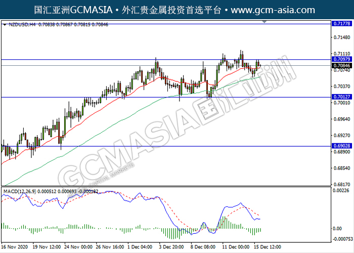 20201216 NZDUSD by keyk | Dec 16, 2020 | 纽元兑美元 | 0 comments GCMAsia-NZDUSD NZDUSD 2020-12-16 NZDUSD,H4: 纽美震荡上行,目前测试前期压力。MACD空头动能略减,若突破继续看多为主。上方关注0.7095和0.7175压力,下方关注0.7010支撑和0.6900支撑。